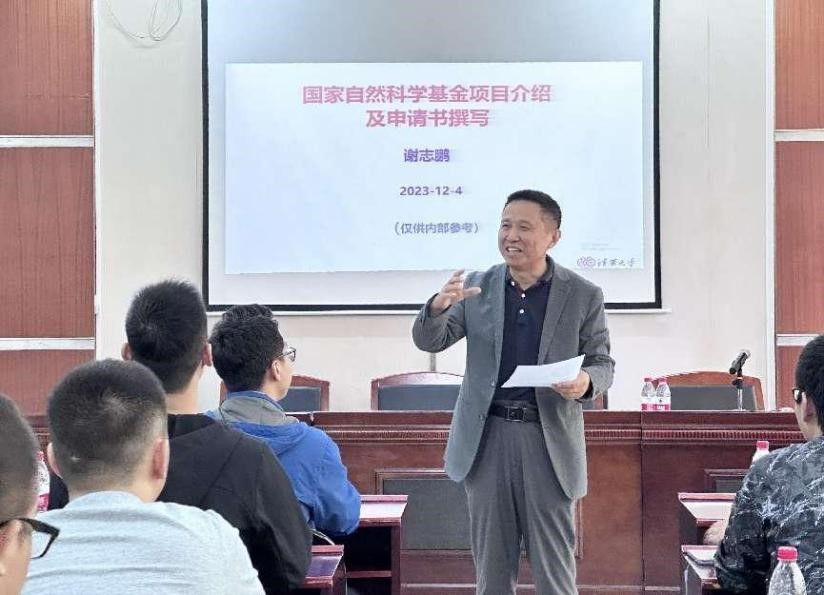然后,谢志鹏教授为在座青年教师开展了题为“国家自然科学基金项目介绍及申请书撰写”,介绍了国家自然科学基金项目基本情况、申请书的撰写、申报要点及注意事项。