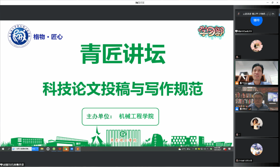 9月21日晚,伟德国际1946bv官网在线上召开了青匠讲坛-《科技论文投稿与写作规范》讲座,会议邀请了《机械工程学报》副编审、重大选题部部长,中国机械工程学会高级会员,IFToMM中国委员会委员,北京科学技术普及创作协会会员罗晓琪主讲。公司全体研究生和部分老师参加会议,会议由公司副经理曾达幸主持。