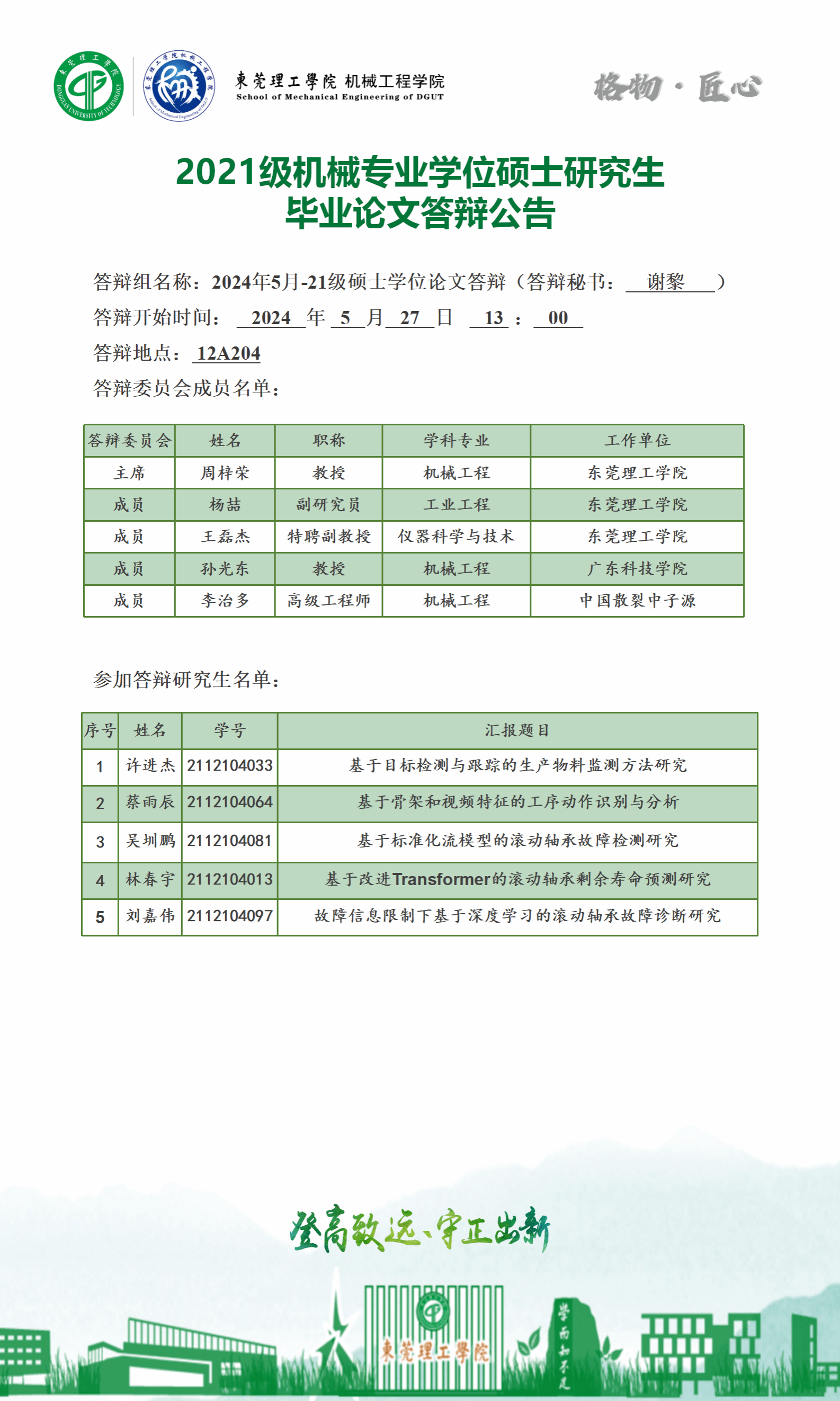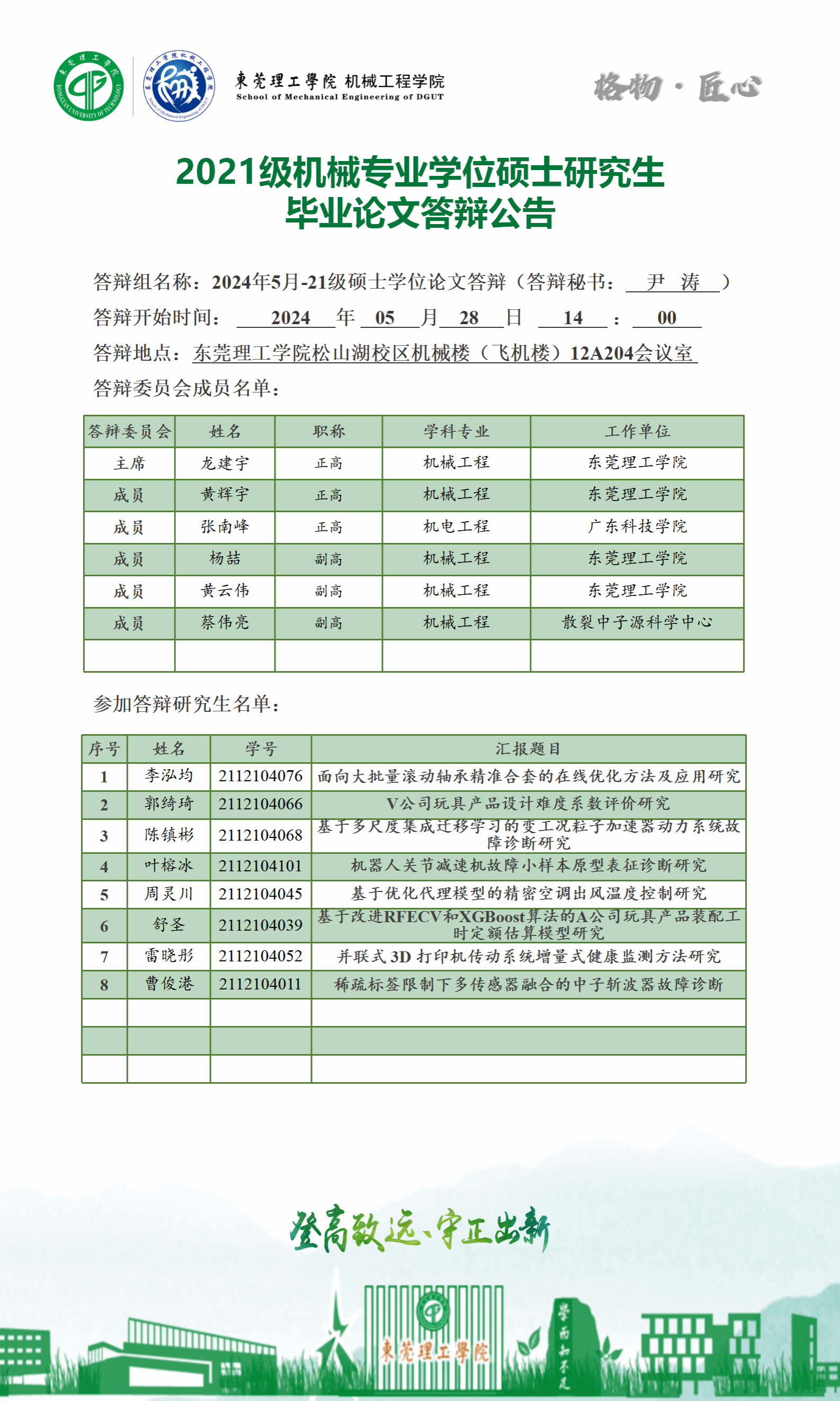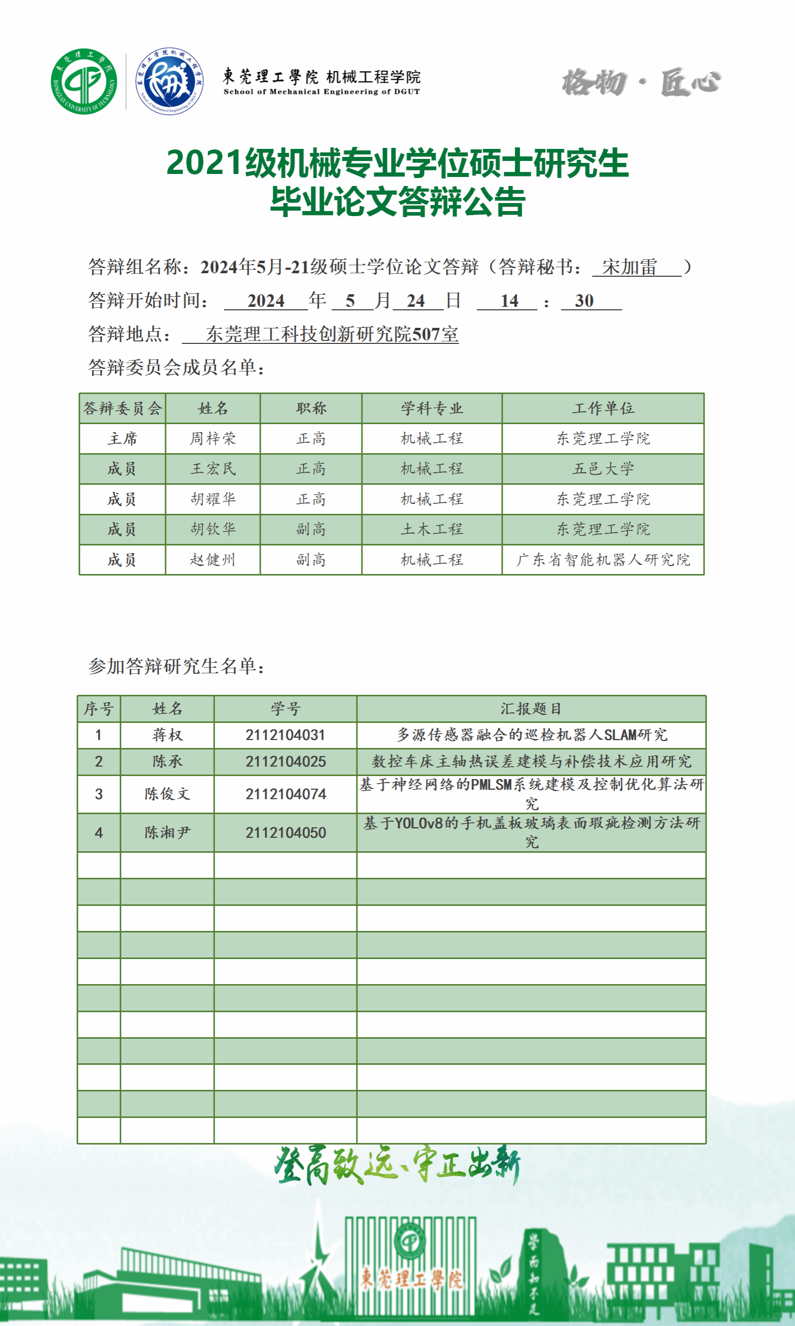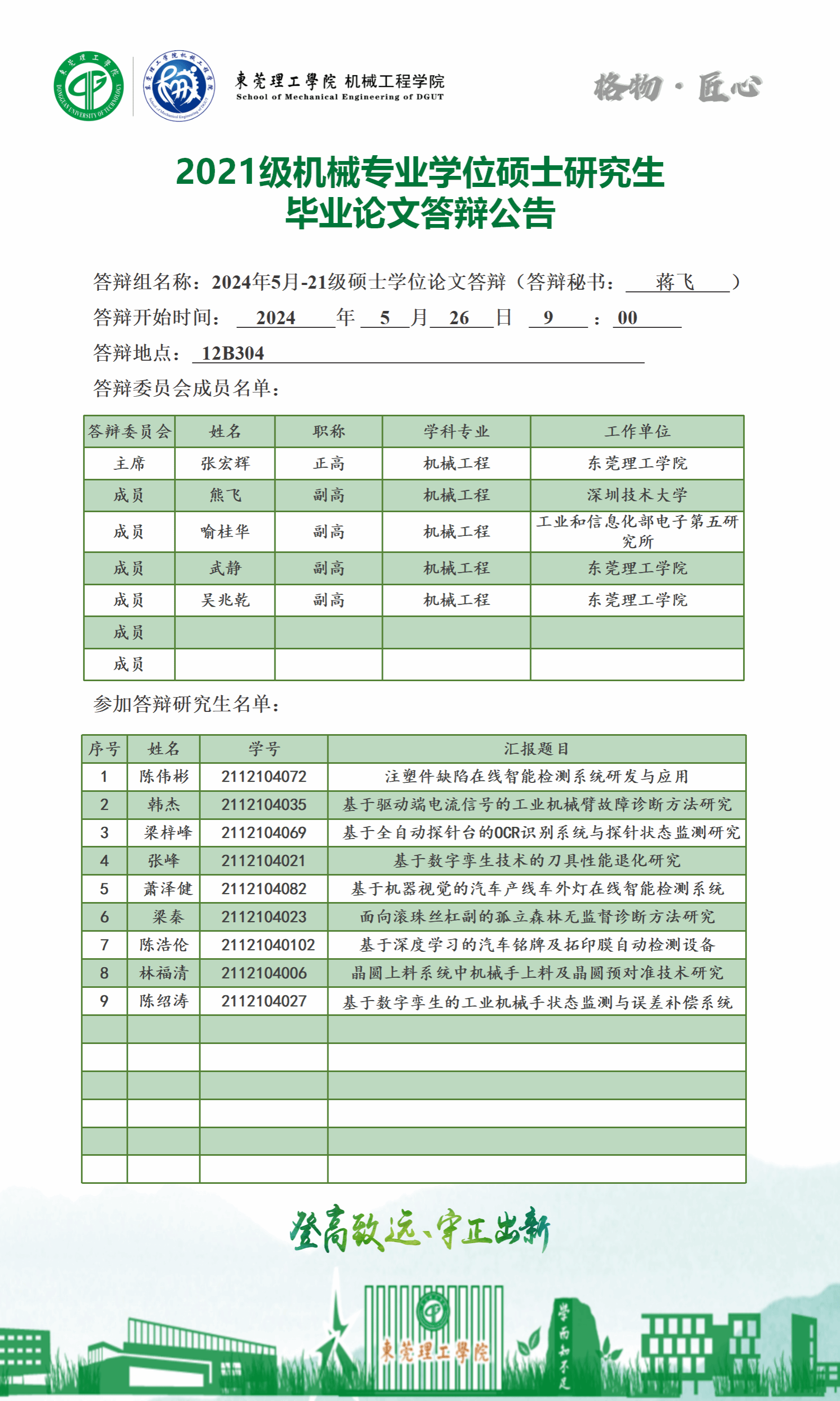 2024届硕士研究生学位论文答辩公告