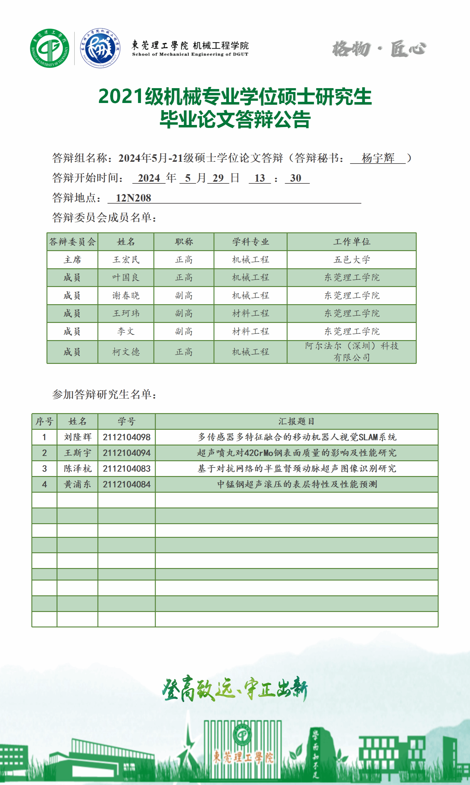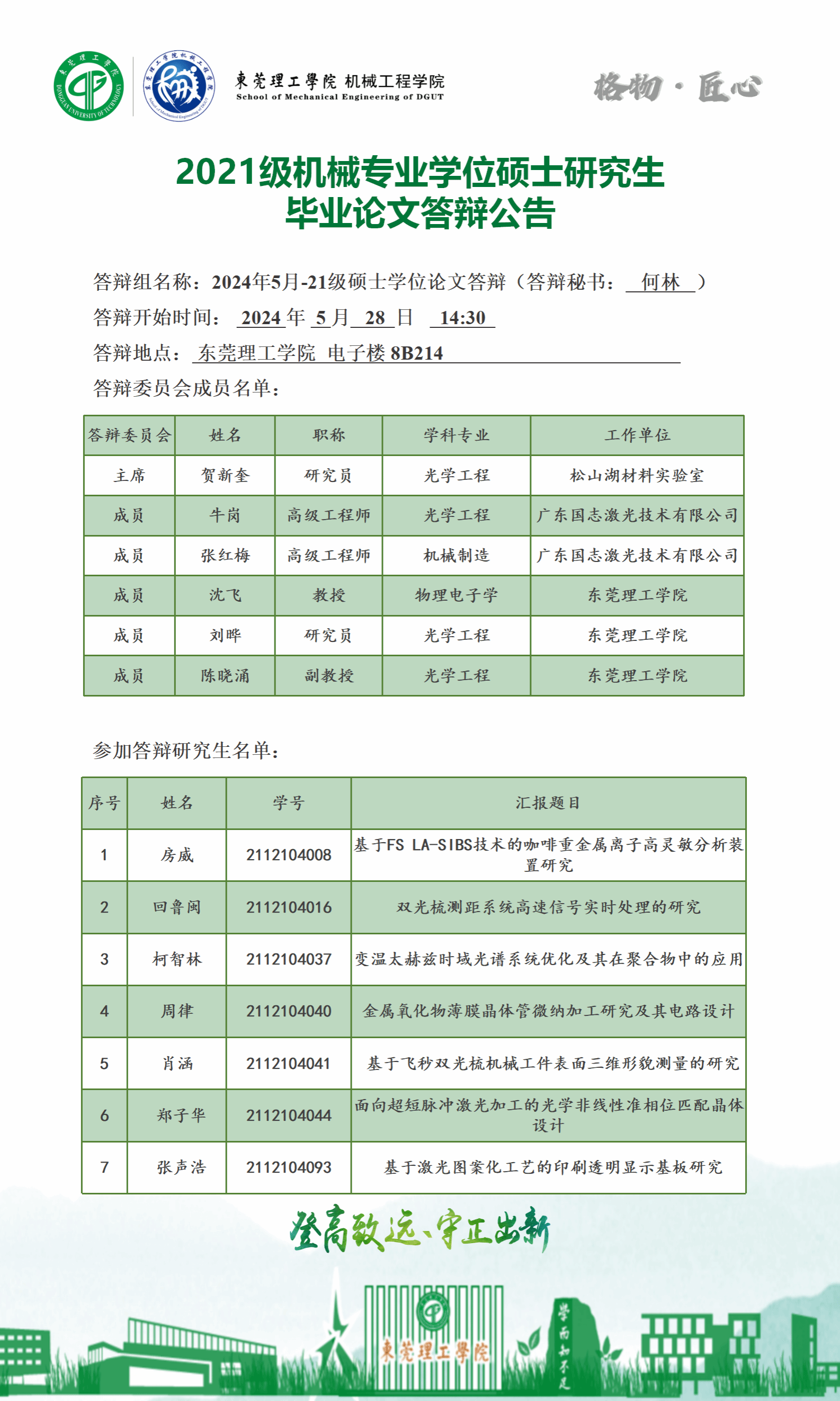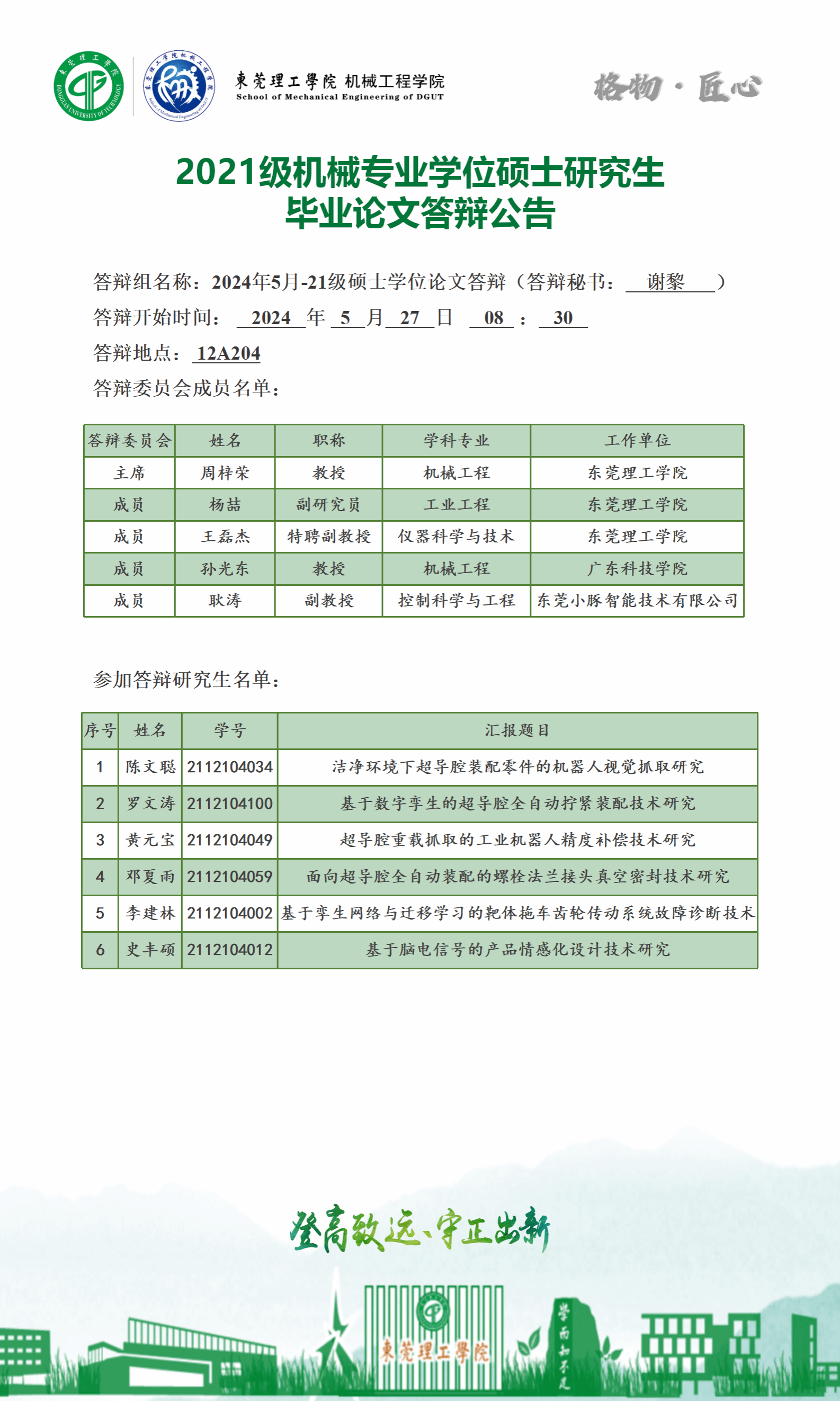 2024届硕士研究生学位论文答辩公告