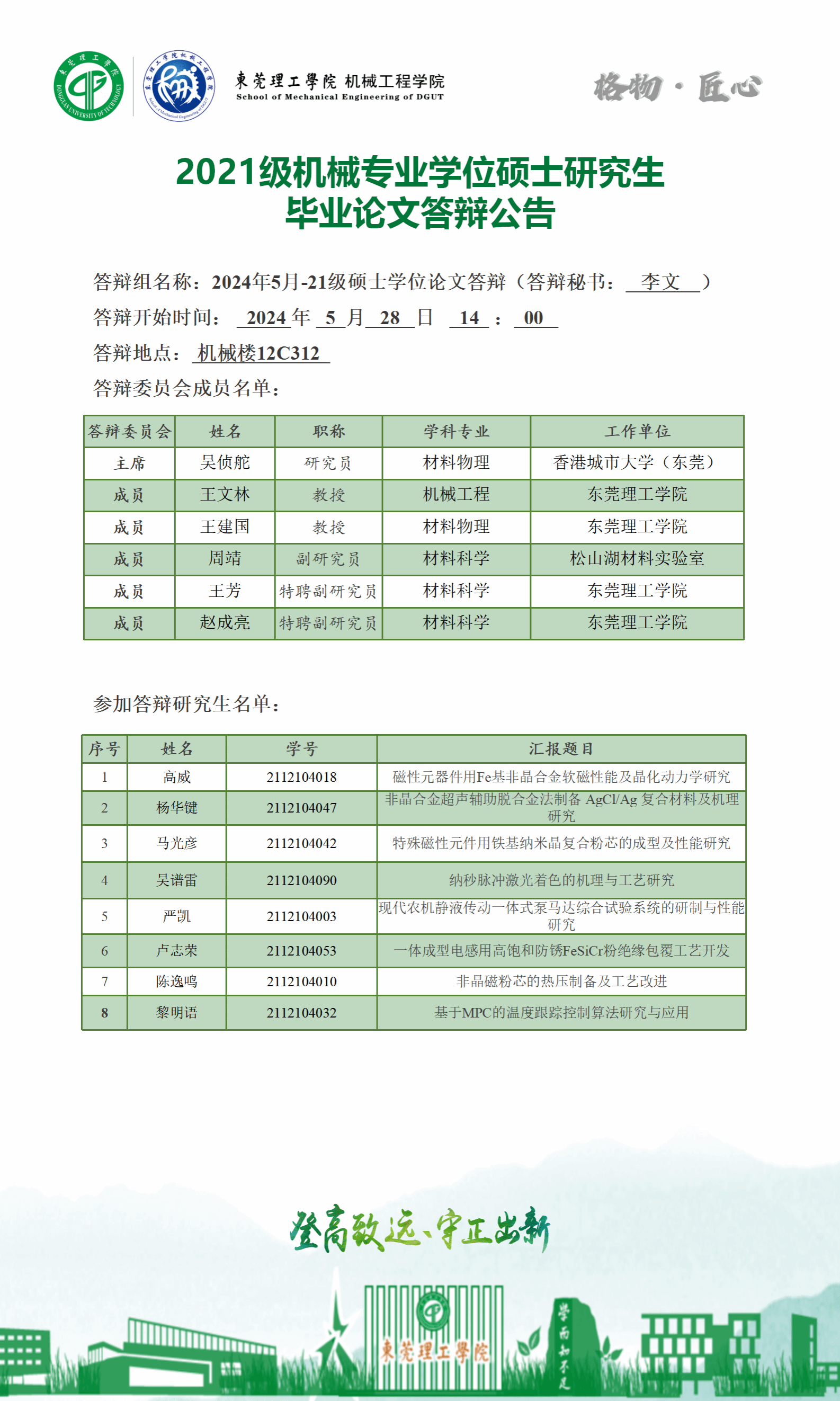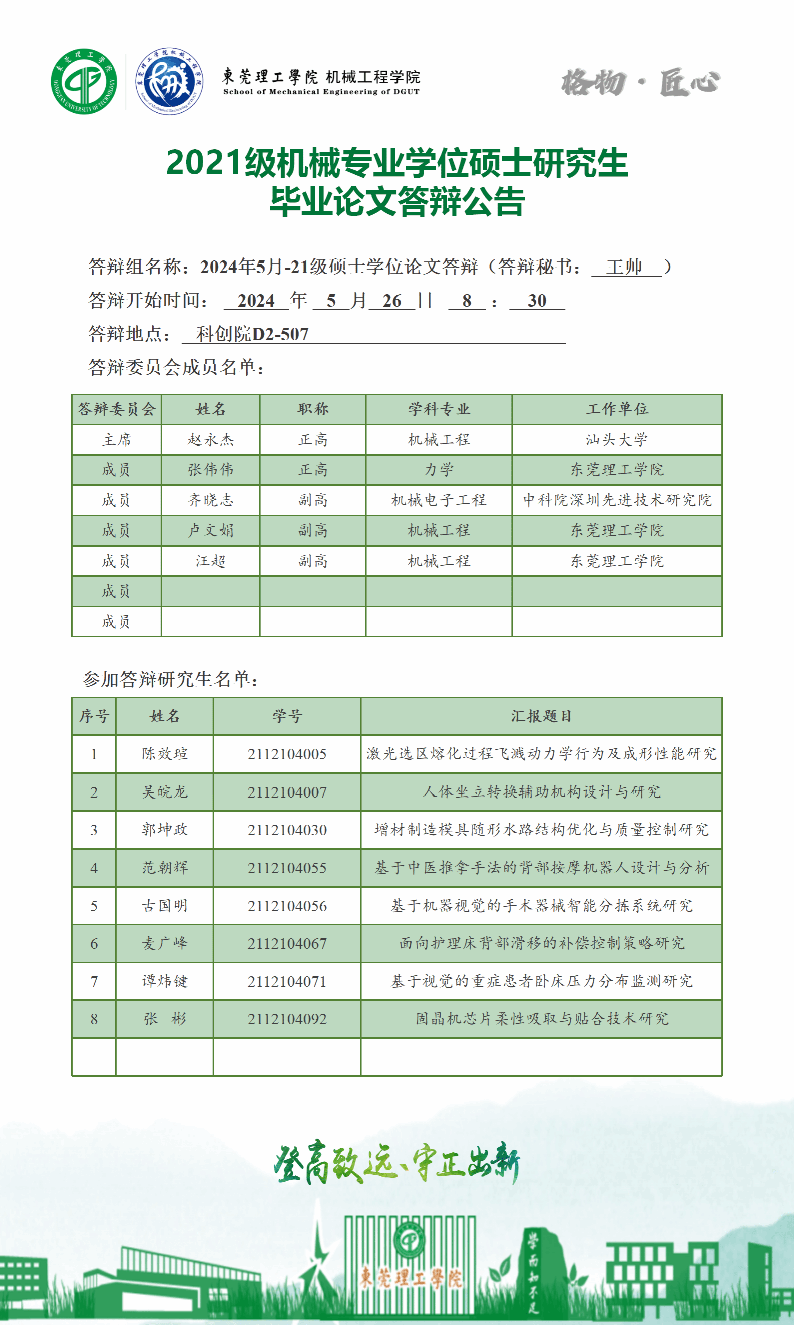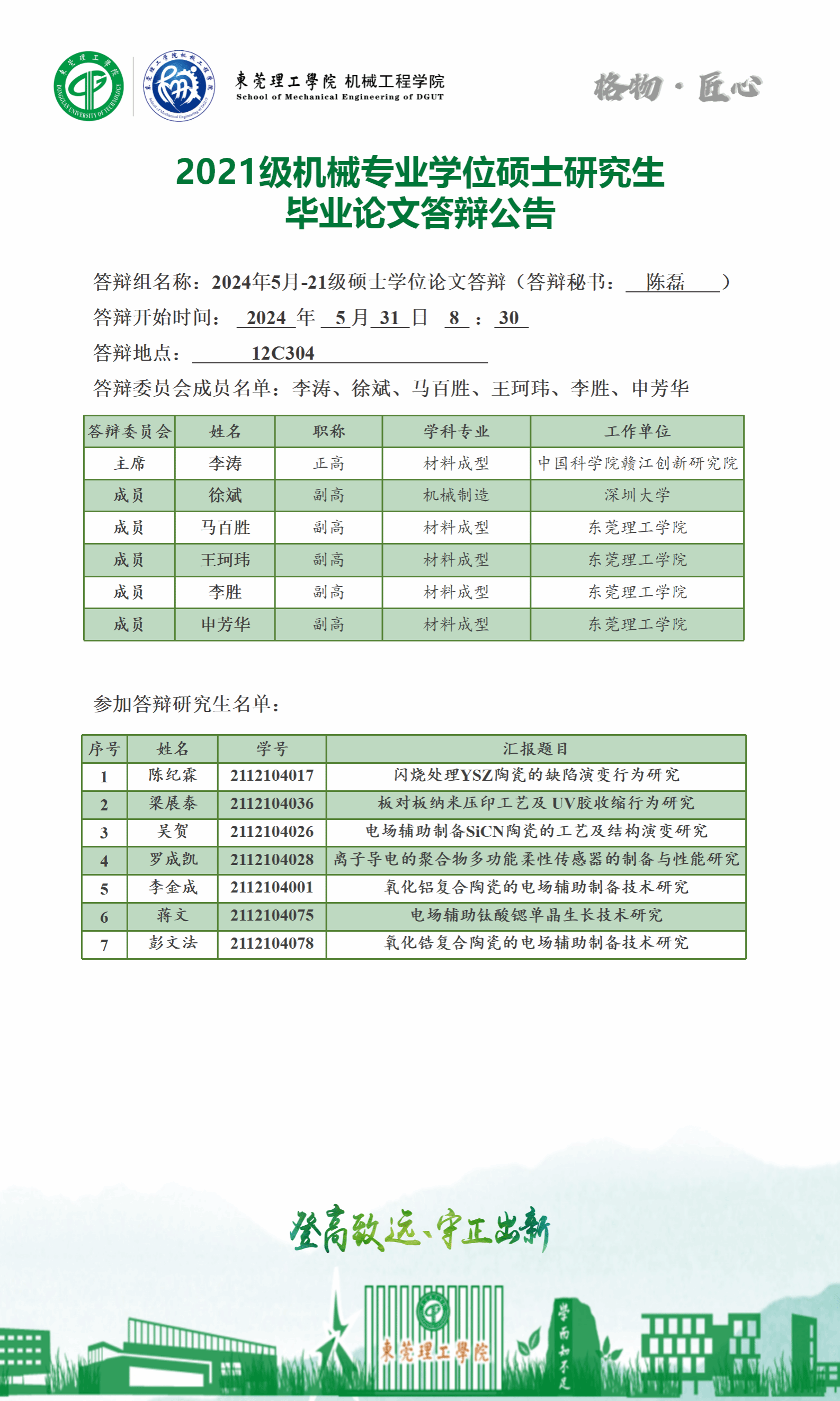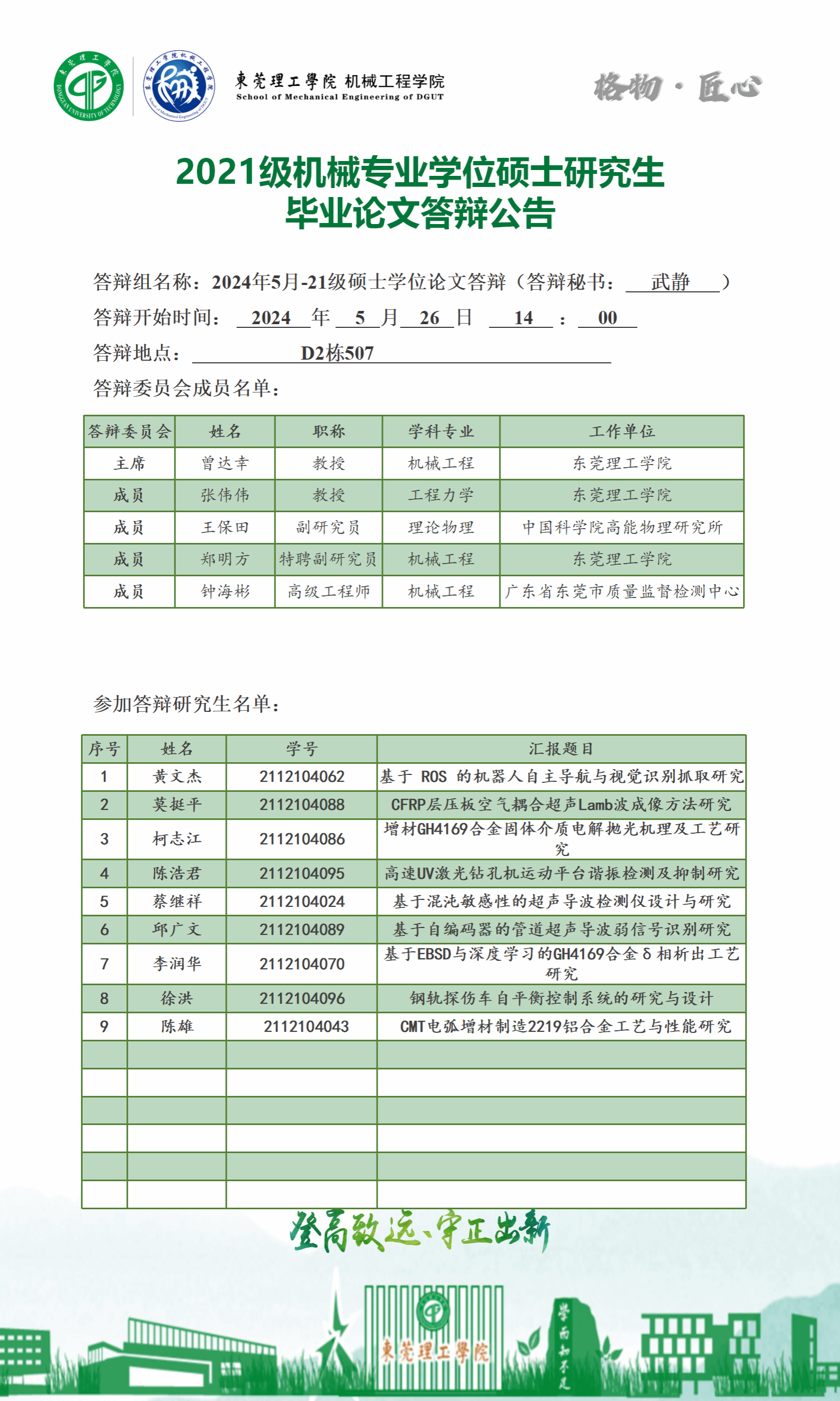 2024届硕士研究生学位论文答辩公告