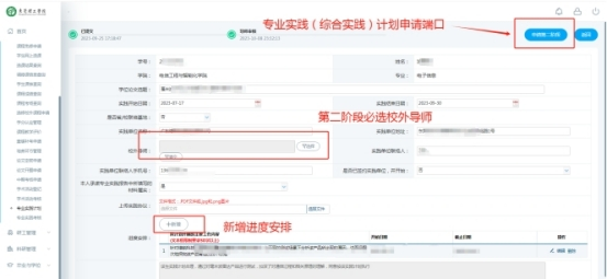 (1)研究生专业实践(综合实践)计划提交:培养管理-专业实践计划-申请第二阶段-提交;