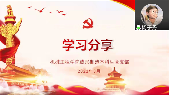 2022年3月30日,伟德国际1946bv官网成形制造本科生党支部召开线上会议,开展“深化课堂教学改革,提升课程育人质量”主题党日活动。