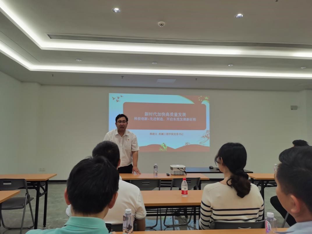 郭建文讲授题为《新时代加快高质量发展,开启东莞发展新征程》专题党课,围绕东莞改革开放历史进程中的重要节点,结合省、市高质量发展大会精神,强调党员师生要深入学习贯彻习近平新时代中国特色社会主义思想和党的二十大精神,深刻认识贯彻新发展理念、推动高质量发展的重大战略部署的深远意义,以赛龙夺锦的精气神干事创业,为东莞经济社会和粤港澳大湾区建设发展添砖加瓦。