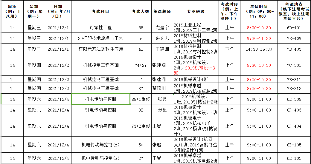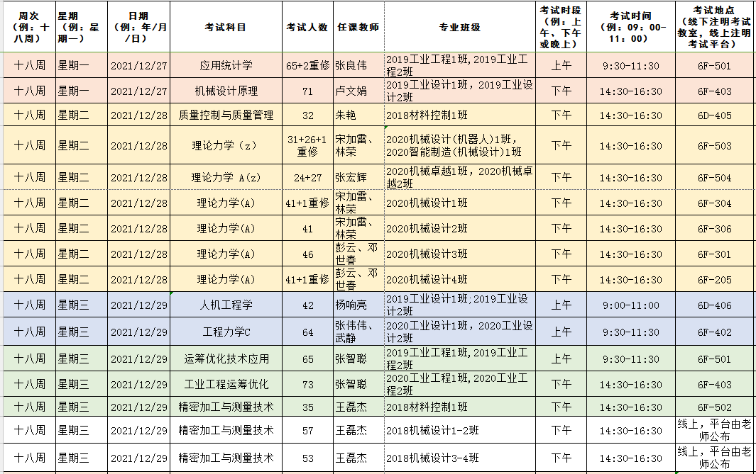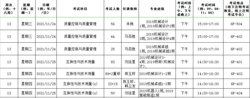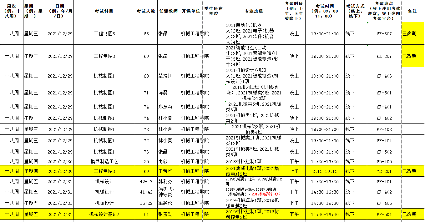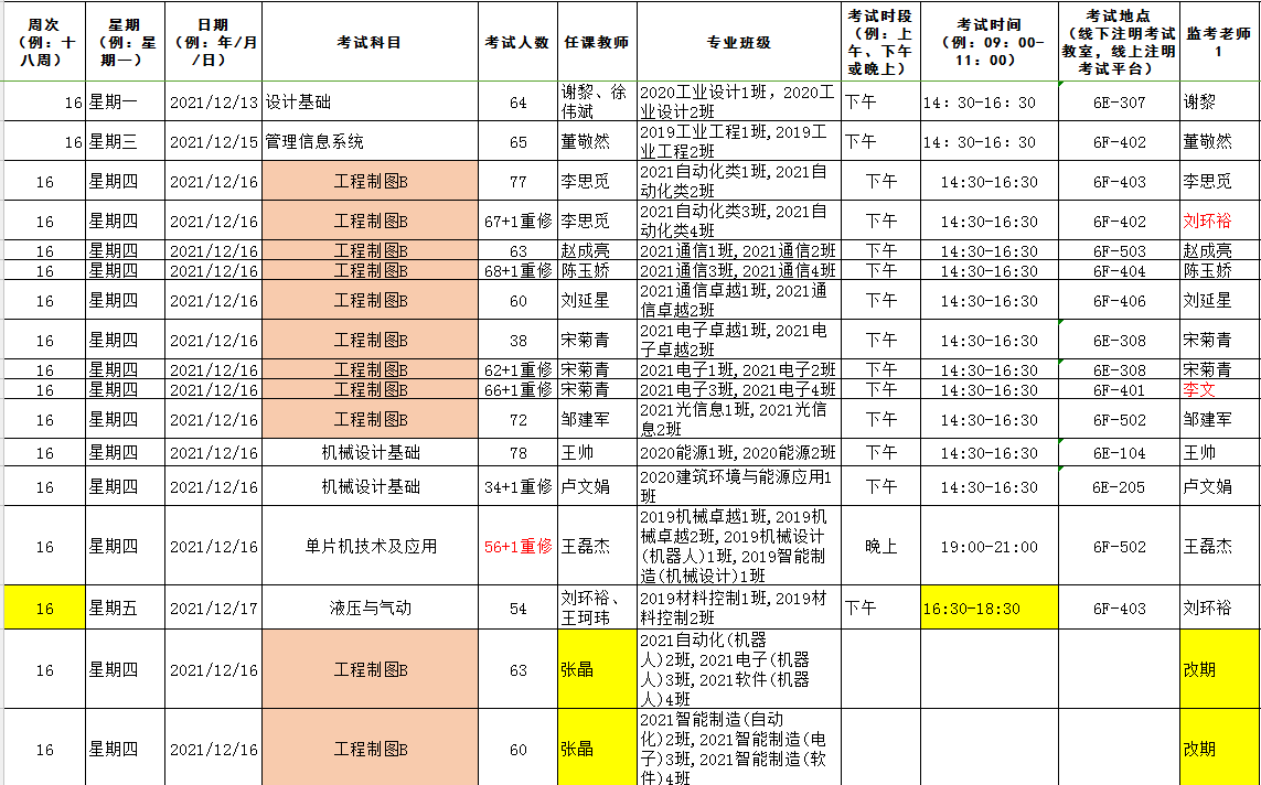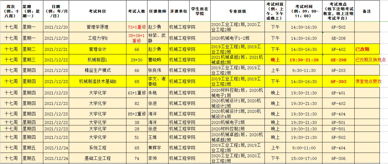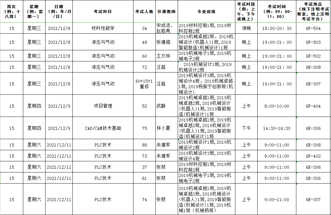 机械工程院安排的考试如无特别说明,补修、跟班重修的员工按跟班班级就坐考试