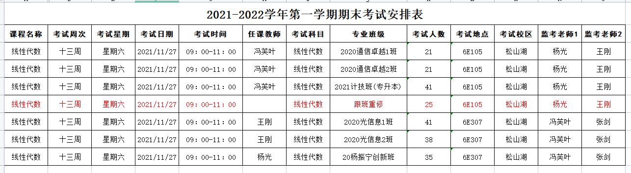 《线性代数》期末考试安排在13周周六(11月27日)上午9:00-11:00,请各位同学认真查阅考试时间和考试地点,按时前往考试,如有疑问,请联系伍老师,办公电话:22861112。