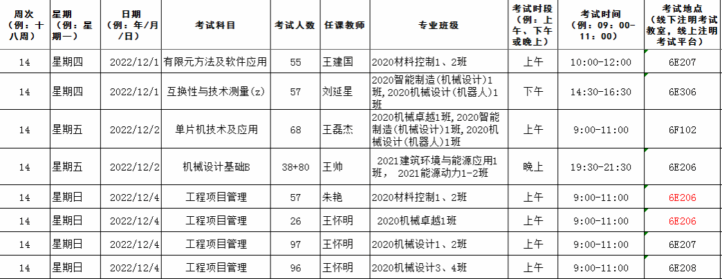 机械工程院安排的考试如无特别说明,补修、跟班重修的员工按跟班班级就坐考试