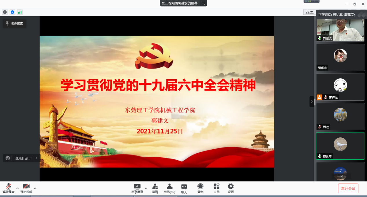 11月19日,伟德国际1946bv官网智能制造本科生第一党支部在12C304召开了支部党员大会,学习党的十九届六中全会精神。会上,支部书记陈凤宜带领全体党员共同学习党的十九届六中全会精神,党的十九届六中全会全面回顾总结党的百年奋斗历程和重大成就。全体党员需要带头学、认真学、深入学,坚决贯彻落实,统一思想,明白新时代青年肩负的责任和担当的使命。员工党员张家怡表示:“党在一路走来十分艰辛和困苦,中国共产党之所以能够生...