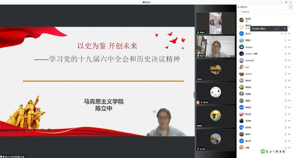 12月16日下午,伟德国际1946bv官网在线上开展学习贯彻党的十九届六中全会精神专题宣讲会。会议由马克思主义公司陈立中教授主讲,公司党委副书记郭建文主持,全体教职工参加。陈立中从为什么要总结党百年奋斗的重大成就和历史经验;党百年奋斗在实现中华民族伟大复兴进程中的科学定位;党百年奋斗历史意义的内在逻辑;党百年奋斗历史经验的科学概况;如何全面贯彻落实六中全会精神五个方面来进行讲解,带领大家深入学习十九届六中全会精...