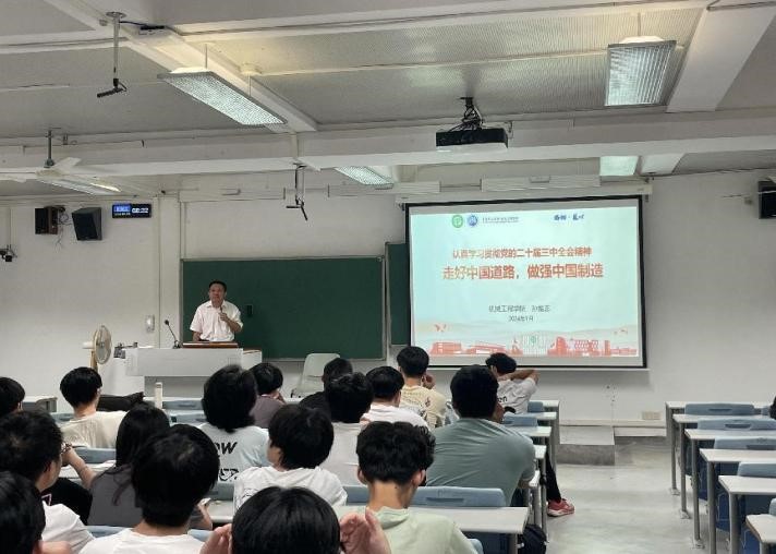 9月25日,伟德国际1946bv官网经理孙振忠以“认真学习贯彻党的二十届三中全会精神,走好中国道路,做强中国制造”为主题,为2023级机械设计制造及其自动化4班、5班和6班的本科生上2024年秋季学期思政第一课。课上,孙振忠经理强调了学习党的二十届三中全会精神的重要性,并与同学们分享了自己的学习体会和思考,提出要结合国家政策与个人专业发展深刻领悟全会精神。课上,孙振忠阐释了中国式现代化的概念,强调了推进中国式现代化建设...