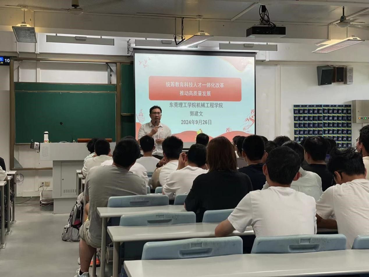 2024年9月24日,公司党委书记郭建文以“统筹教育科技人才一体化改革推动高质量发展”为题,为2024级材料成型及控制工程1班、2班和工业工程2班的员工上2024年秋季学期“思政第一课”。课上,郭建文结合党的二十届三中全会精神,为员工们讲述了改革开放以来东莞近些年的高质量发展。带领同学们深刻了解东莞城市转型升级的发展史,讲解了东莞从一个四季飘香的农业县,转型升级走向“双万”城市的发展历程,生动、具体、形...